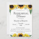 Invitación a la fiesta de compromiso con girasoles de acuarela rústica y aliento de bebé sobre fondo de burdeos. Personalice el estilo, color y tamaño de la fuente del texto. El color de fondo también se puede personalizar para que coincida con su evento.