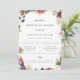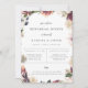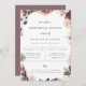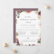 Marco floral de acuarela en tonos de rosa sonrosado y ciruela púrpura, invitación a la cena de ensayo. Diseño de tipografía chic y moderno. La parte trasera de la tarjeta presenta un color ciruela púrpura polvoriento y apagado sólido.