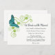 Invite a los huéspedes a su cena de ensayo con una Verde azulada invitación a cenar al boda floral de mariposa. El diseño de la invitación incluye una mariposa verde azulada que descansa sobre flores y flores de color verde brillante. Personalice los nombres del novio y la novia junto con la fecha y los detalles del ensayo. También hay material de boda adicional disponible con este diseño. ¿Necesita ayuda con la personalización? Por favor, contáctame y elaboraré la redacción y los detalles para adaptarlos a su satisfacción.