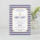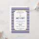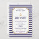 Personalizar este elegante y moderno ensayo Náutico de personalizable completo Invitación a cenar. Diseño de rayas azules y blancas, definido como una plantilla para una personalización sencilla. Todos los elementos son flexibles y se pueden mover, cambiar de tamaño o quitar. Este diseño es una versión con sólo nombres y no nombres formales.