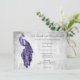 Invite a los huéspedes a su cena de ensayo con una invitación a cenar al boda Purple Peacock. El diseño de la invitación presenta un pavo real elegante con un delicado follaje y un fondo de grano. Personalice los nombres del novio y la novia junto con los detalles del ensayo de la cena. También hay material de boda adicional disponible con este diseño.