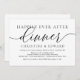 Tarjeta de invitación a la cena de fuga de novios con escritura en caligrafía simple minimalista moderna y romántica (Cena Felices para siempre). Es perfecta para el anuncio de su fuga de novios y celebración de la fiesta, después de su mejor día. Agregue sus detalles en fuente / letra negra a juego.