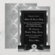 Cena corporativa de etiqueta formal. Utilice para cualquier evento, apertura o presentación para su negocio, cena de recaudación de fondos, fiesta de trabajo. Personalice para cambiar o agregar detalles. Elegante lazo de damasco y joya negro y plateado. Tenga en cuenta: ¡Todas las imágenes planas!