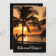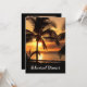 Una romántica invitación a cenar con una puesta de sol en una playa tropical con palmeras. Si lo desea, puede cambiar el color de fondo de la parte posterior.