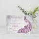 Invite a los huéspedes a su cena de ensayo con una invitación a cenar al boda Magenta Peacock Leaf Vine. El diseño de la invitación presenta un fondo gris claro con un pavo real magenta vibrante con un embellecimiento de viñas de hojas. Personalice los nombres del novio y la novia junto con los detalles del ensayo de la cena. También hay material de boda adicional disponible con este diseño. ¿Necesita ayuda con la personalización? Por favor, contáctame y elaboraré la redacción y los detalles para adaptarlos a su satisfacción.