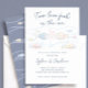Celebra la noche antes del gran día con esta encantadora invitación para la cena de ensayo "Dos menos peces en el mar". Este dulce diseño de acuarela presenta dos adorables peces nadando uno hacia el otro rodeados de suaves olas del océano, burbujas y delicados elementos marinos pastel. La paleta de colores azules calmantes y el caprichoso tema submarino crean un ambiente ligero y romántico perfecto para una celebración de boda inspirada en la playa, náutica o el océano. Personaliza fácilmente el texto para que coincida con los detalles de tu cena de ensayo y crea una invitación memorable para familiares y amigos.