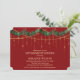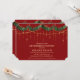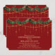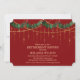 Invitación a la cena de retiro de la fiesta de Navidad con guirnalda de acebo y luces de cuerda doradas brillantes