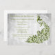 Invite a los huéspedes a su cena de ensayo con una invitación a cenar al boda Green Peacock Leaf. El diseño de la invitación presenta un fondo gris claro con un pavo real verde vibrante con un embellecimiento de la vid. Personalice los nombres del novio y la novia junto con los detalles del ensayo de la cena. También hay material de boda adicional disponible con este diseño. ¿Necesita ayuda con la personalización? Por favor, contáctame y elaboraré la redacción y los detalles para adaptarlos a su satisfacción.