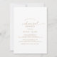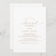 Esta moderna invitación a la cena con guión dorado es perfecta para un minimalista ensayo boda. El sencillo diseño en color amarillo dorado presenta una tipografía de letras industriales única con un estilo boho moderno. Personalizable de cualquier color. Mantenga el diseño minimalista y elegante, tal como está, o lo personalice añadiendo sus propios gráficos y obras de arte.