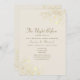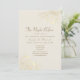 Elegante invitación a la cena con un suave papel de marfil y delicados acentos florales de oro. Diseñado con escritura romántica y tipos de letra serif clásicos, esta pieza atemporal se coordina con su suite de papel boda. Personalizable completo de nombres, fecha e información de RSVP.