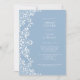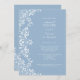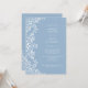 Pone el escenario para una noche de ensayo boda con esta elegante y polvorienta invitación a la cena con el tema azul. Los tonos azules y blancos son perfectos para una boda romántica o una boda de jardín floral. Personalice los detalles y añada el monograma de novia y novio en la parte posterior. Diseñado por Simple Desert Designs Studio. Envíenos un mensaje para obtener un color personalizado que coincida con su tema boda.