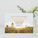Hermosa y elegante invitación a la cena con girasoles floreciendo en un campo de flores silvestres. Invitación perfecta para el campo, la cena rústica, el otoño o la cena de verano en el granero.