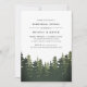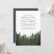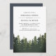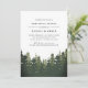 Una moda rústica para cenas de ensayo en ambientes montañosos, forestales o invernales, nuestra invitación para el ensayo de Tall Pines tiene un borde inferior de altos árboles de siempre verde, en ricos tonos de verde cazador. Añada los detalles de la cena de ensayo utilizando los campos proporcionados, en gris de carbón profundo.