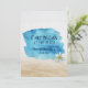 La acuarela azul salpicada de nenúfares blancos sobre un suave fondo de madera gris y arena para la ceremonia de renovación de la promesa de boda en la playa.