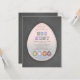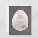 Único, rústico, pero moderno, Fiesta de Pascua, diseño de invitación a la caza de huevos con una gran forma de huevo con un colorido marco de puntos de polka, huevos de pascua decorados, sobre un fondo de pizarra. Utilice la herramienta Personalizar para agregar su información. Para más, por favor, visita mi colección de celebraciones de Pascua. ¡Feliz Pascua! ¡Disfruta de la caza de huevos de Pascua en tu Brunch de Pascua!