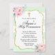 Con flores rosas dulces y un fondo de menta suave, esta invitación es adecuada para todas las ocasiones.