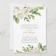 Personalizado asequible imprimió invitaciones de confirmación con un elegante borde floral pintado con acentos de Relieve metalizado blanco, verde y falso oro. Personalice la plantilla con los detalles del evento o utilice las herramientas de diseño para personalizar del texto, elija los colores de fondo y edite los tipos de letra para crear su propio diseño de invitación único. En el lado inverso se muestra un fondo verde de bonito o se utiliza el espacio para agregar texto o fotos adicionales si es necesario. Este bonito diseño floral neutro es perfecto para cualquier temporada.