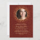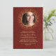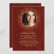 Una invitación formal y muy elegante para tu celebración de confirmación. El fondo rojo oscuro tiene movimientos abstractos y una ventana de fotos redonda dorada. La tarjeta es fácil de personalizar con su redacción, tipo de letra, color de fuente y elección de seis tipos de papel. ¿No es exactamente lo que buscas? Todos nuestros productos pueden ser personalizados diseñados para satisfacer sus necesidades sin cargo adicional. Simplemente contáctenos en askcottonlamb@gmail.com Productos de coordinación disponibles: