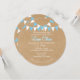 BABY BUNTING AZUL BAPTISM CHRISTENING INVITATION. Este bautismo rústico, bautizo o primera invitación a la comunión, presenta un fondo de papel kraft-estilo, un bunting azul y blanco y una magnífica caligrafía de escritura con una sombra azul. El reverso presenta filas de amarre azul y blanco en un fondo de papel kraft. Diseñado por Pure Piglet© en www.zazzle.com/purepiglet*.