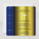 Esta impresionante tarjeta es un hermoso diseño azul y dorado. Está cubierto de cruces y tiene un aspecto de desplazamiento. La tarjeta sin duda resaltará y comenzará el bautizo de su hijo con estilo.