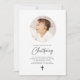 Invitación moderna y minimalista a la Navidad con una foto redonda y la palabra 'cristianismo' con un tipo de letra de caligrafía. Tenga en cuenta que no puede cambiar la palabra 'Christening' pero puede editar el resto del texto en este diseño. Puede cambiar el color o puede eliminarlo y reemplazarlo por un nuevo cuadro de texto si lo prefiere.