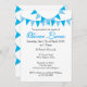 BABY BUNTING AZUL BAPTISM CHRISTENING INVITATION. Este bautismo de bonito, bautizo o primera invitación a la comunión presenta un bunting azul y blanco, y una magnífica caligrafía de escritura con sombra de gota azul. En el reverso aparecen filas de fondo de agrupación azul y blanco. Diseñado por Pure Piglet© en www.zazzle.com/purepiglet*.