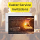 Elegantes invitaciones de iglesia para repartir a su congregación y comunidad: Un hermoso diseño de tres cruces/tumba vacía para las tarjetas del Servicio de Amanecer de Pascua del Domingo de Resurrección. Agregue sus detalles y estarán listos. #mailer