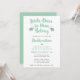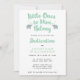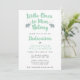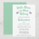 Una tipográfica invitación a la dedicación de su pequeño niño con una línea del popular himno Jesús me ama. La frase "Los pequeños a él le pertenecen" está escrita en un guion verde menta, flanqueado por dos elefantes grises. Esta invitación da espacio para la ceremonia y los detalles de la recepción.
