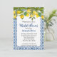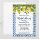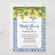 Invitación de Despedida de Soltera con borde de azulejos azules y blancos y diseño de limón