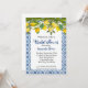 Invitación a la despedida de soltera con borde de baldosas azules y blancas y diseño de limones