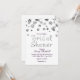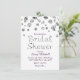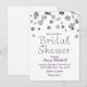 Invitación a la despedida de soltera con brillo blanco y plateado.