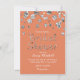 Invitación a la fiesta de despedida de soltera con brillo coral y plata.
