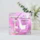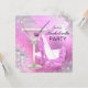 Invitación de despedida de soltera rosa. Tacones brillantes y copos de nieve con cóctel rosa. Tenga en cuenta: ¡Todas las imágenes planas! no tienen joyas reales.