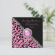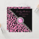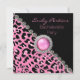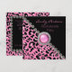 Invitación elegante a la fiesta de despedida de soltera, realizada en un estampado de leopardo moderno en rosa y negro, con gráficos de diamantes brillantes y acentos de tono plateado. Personalice el texto rosa para su ocasión especial.