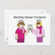 Dos mujeres de dibujos animados con gafas de sol funky y atuendos rosa y malva brindando entre sí con copas de champán. Las palabras 'Invitación a la despedida de soltera' acompañan a la imagen.