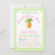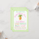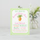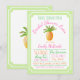 Invitación de despedida de soltera con piña con una hermosa piña en un fresco fondo verde lima y blanco. Esta invitación de despedida de soltera luau se personaliza fácilmente para su evento simplemente agregando sus detalles en el estilo de fuente y redacción de su elección. También puede agregar un color de fondo y eliminar o cambiar el tamaño de la piña en la parte posterior. Este es un diseño impreso sin papel de aluminio real, brillo, etc.