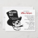 Invitación única de despedida de soltero con gráficos de un cráneo en blanco y negro que lleva un sombrero de copa y fuma un cigarro contra un fondo blanco. El texto en blanco, rojo y negro es totalmente personalizable y listo para personalizar para la noche de chicos.