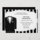 Excelentes invitaciones para despedida de soltero con un esmoquin negro. La invitación perfecta para una gala de etiqueta. Personaliza con la información de tu fiesta.