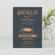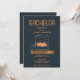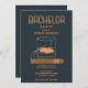 Invitación a la fiesta de despedida de soltero en un diseño naranja y azul marino con un puro y un vaso de whisky. Personaliza con los detalles de tu fiesta.