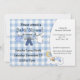 Personalice esta invitación a la ducha de bebé impresa en un fondo azul gingham, acentuada con una línea de ropa de bebé y el bebé dando una siesta en una nube. El texto tiene el formato frontal y posterior, y todo está listo para que usted simplemente edite en el sencillo editor de texto Zazzle. Creado en parte con gráficos de Alice Smith de www.digiwebstudio.com y Ester Collins en www.craftycardmaking.com