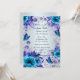 flores azul bonito y violeta con mariposa. Asegúrese de que marca la pauta para su elegante ducha de novia con estas encantadoras invitaciones a la ducha de novia. Esta bonita tarjeta de invitación a la ducha está lista para ser personalizada. Personalice la tarjeta cambiando el texto en los campos proporcionados delante y atrás. Puede cambiar el estilo de fuente, el tamaño y el color, así como el tipo y estilo de papel.