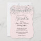 Confeti rosa y plateado y una invitación a la ducha para bebés.