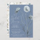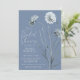 Una invitación a una ducha de novias con flores silvestres de azul con un hermoso patrocinador de flores silvestres estampado. Diseño original de Kelley Talent.