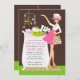 Invite a todo el mundo a una ducha de bebé con esta moda moderna personalizable, una invitación a la ducha de bebé con una cuna llena de cajas de regalo envueltas, ramo de flores, móvil colgando del techo sobre la cuna. El diseño continúa al final de la invitación.
