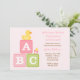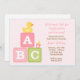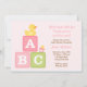 Esta bonita invitación de Baby Shower incluye regalos de bebé rosas y verdes y un pato de goma en un vagón. Esta moderna y divertida invitación a la ducha de bebé es perfecta para cualquier madre.