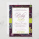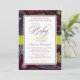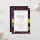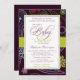 Esta elegante ducha de moda para bebés ofrece flores dulces de ciruela oscura, azul acuático, verde lima y un diseño paisajista. En el medio hay una banda verde lima. En el centro, se puede personalizar fácilmente la información de la ducha de bebé. Con los colores de la invitación, esto sería adecuado para una ducha de bebé.