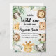 Invitación a la ducha de bebé con temática neutra de color de agua y de género safari