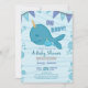 ¡fiesta como un narval! Celebra el cumpleaños de tu pequeña con nuestra Adorable Invitación de la fiesta Narwhal. Este lindo unicornio del mar narcana invitaciones a la ducha de bebé, tiene un narval y su bebé narwhal nadando en una espuma azul del océano. Las invitaciones a las fiestas de verano en la piscina son perfectas para tu fiesta temática de narwhal, fiesta temática oceánica, invitaciones a las duchas náuticas para bebés, ducha con temática de unicornio marino.