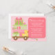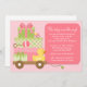 Esta bonita invitación de Baby Shower incluye regalos de bebé rosas y verdes y un pato de goma en un vagón. Esta moderna y divertida invitación a la ducha de bebé es perfecta para cualquier madre.