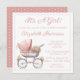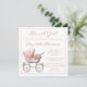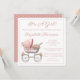 Esta tierna invitación a la ducha de bebé de una niña adorable tiene un carro de bebés vintage en tonos suaves de color agua rosado con flores. Personalice con su elección de texto especial.